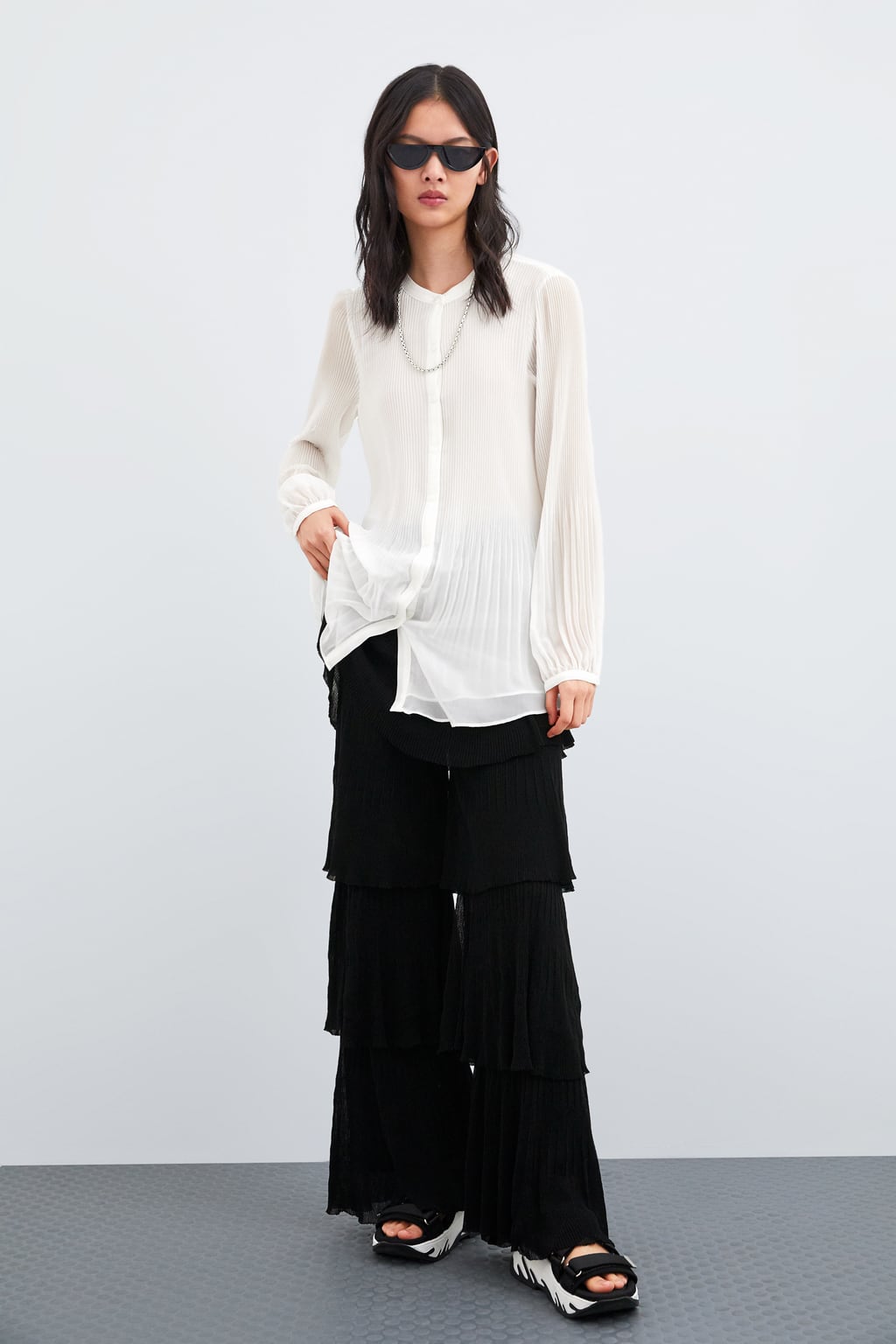 Oggi il plissé lo troviamo su tutte le passerelle, sia nelle collezioni autunno-inverno che primavera-estate: gonne, vestiti, camicie, foulard. Lo possiamo abbinare con décolleté, sneakers, t-shirt, camicia, dolcevita, blazer, chiodo in pelle.