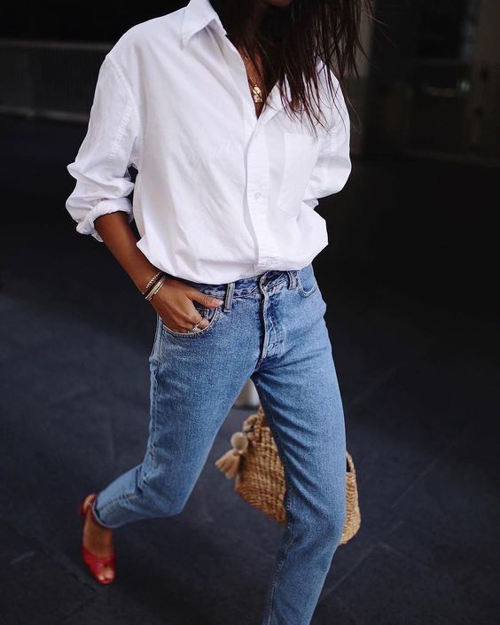 - Camicia bianca: perfetta da mattina a sera, per il lavoro, la scuola, l’aperitivo o la cena fuori. Adatta ad ogni look, la possiamo abbinare con il jeans, il pantalone, la gonna, il blazer.