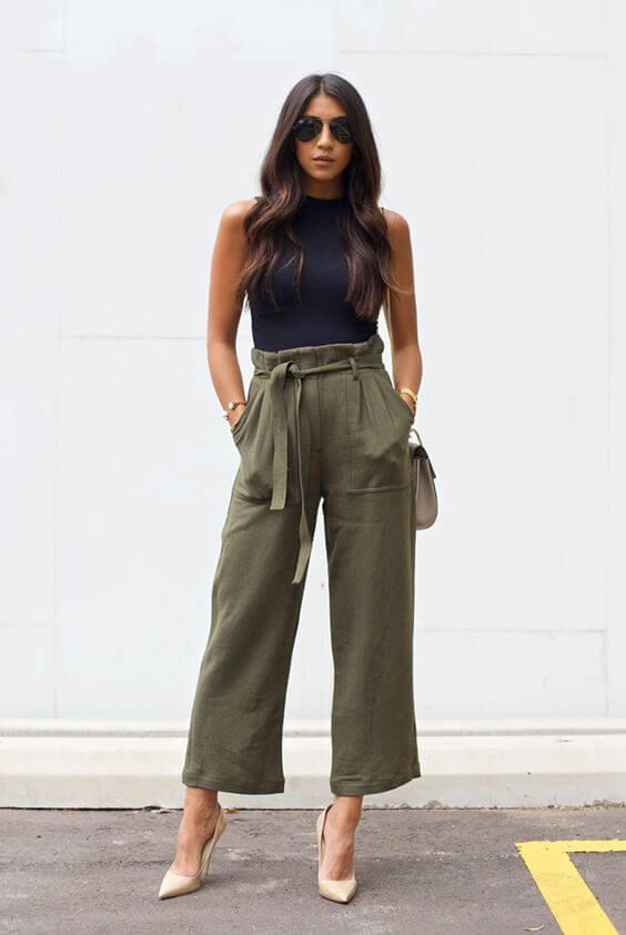 - VERDE MILITARE: rock e deciso, da abbinare a rosa, bianco, nero, beige, oro, argento; pantalone verde militare, t-shirt bianca, chiodo in pelle, sandali alti e si è subito al top