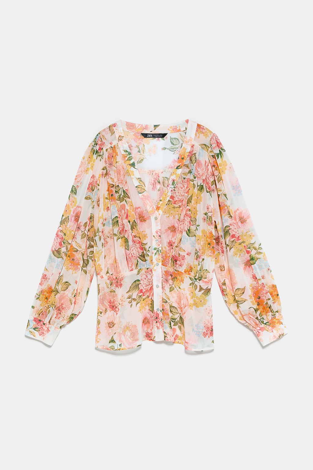 Blazer monopetto arancione- Pantalone vita alta svasato alle caviglie- Camicia con stampa floreale sui toni del bianco e dell’arancione- Sandali infradito- Borsa a mano rigida con l’iconico disegno Paisley
