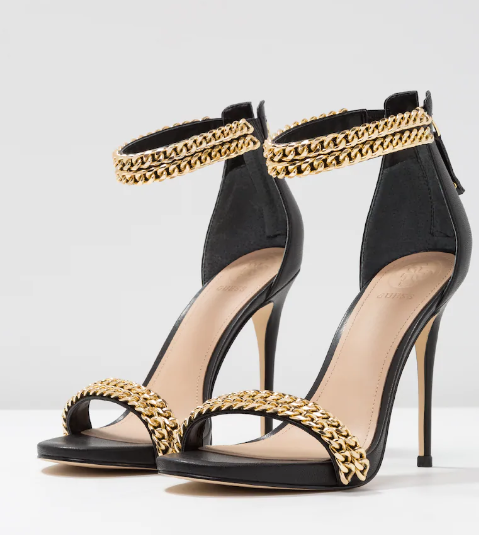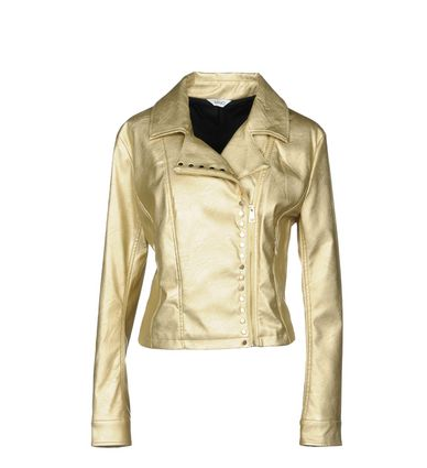 Giacca in popeline laminata oro- Crop Top nero- Pantaloni jogging neri con dettagli oro- Sandali in pelle neri e oro- Tracolla nera