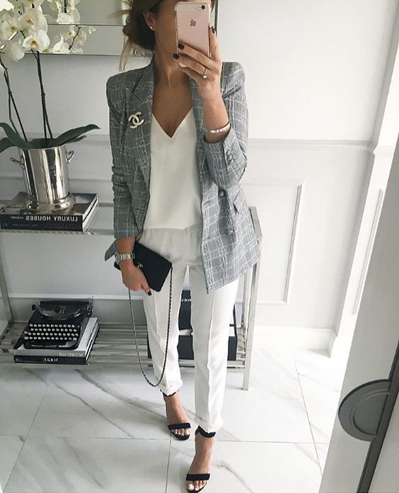 - PANTALONI BIANCHI + BLAZER A CONTRASTO