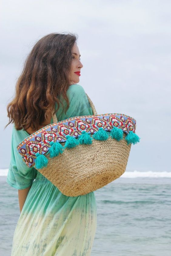 Borse da mare- il primo ed immancabile accessorio per i look da spiaggia è la borsa, che deve essere capiente per contenere tutto ciò di cui abbiamo bisogno durante le nostre giornate a mare. Le maxi bag di tendenza sono rigorosamente in paglia, con decorazioni e dettagli che rendono unica! L’abbinamento dei colori con il copricostume o caftano è una vera chicca di stile!