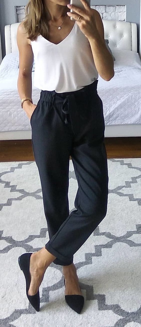 - PANTALONI OVERSIZE A VITA ALTA + TOP + MOCASSINI