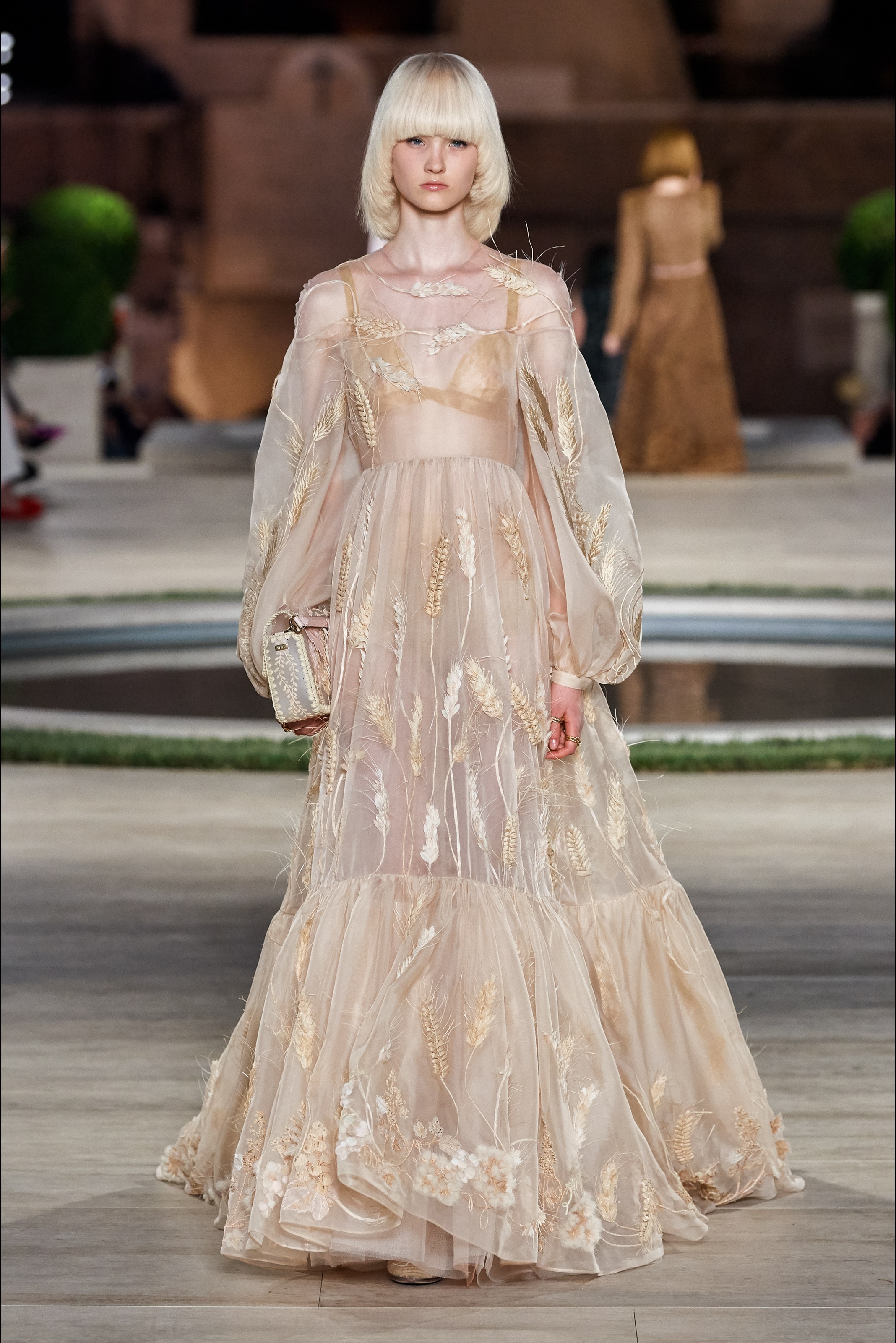 Scenario mozzafiato per la couture autunno/inverno 2019-2020 firmata Fendi. Lo show ha avuto luogo il 4 luglio, nel Tempio di Venere, sul colle Palatino, sito che la maison del gruppo Lvmh ha deciso di restaurare con un finanziamento di 2,5 milioni di euro e che per la prima volta ha ospitato una sfilata di moda. The Down of Romanity, è un omaggio a Karl Lagerfeld, direttore creativo della maison per ben 54 anni. Stesso numero di look in passerella, di cui 21 nuovi realizzati in pelliccia sostenibile ed i restanti rielaborazioni di pezzi d’archivio. Sfilano abiti da ballo stampati con gli stessi tasselli esagonali dei pavimenti mosaico del tardo Impero, l’iconica pelliccia ‘Astuccio’ disegnata dal Kaiser nel 1971, robe manteau, cappotti Seventy, tailleur in seta anni ’70, abiti impero, per una palette che va dai pastello al citrino, dal verde giada al quarzo rosa e del calcedonio ai colori dei minerali e della terra screziati d’oro.