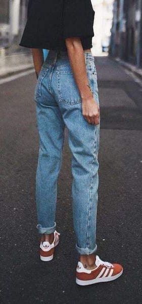 - JEANS MOM-FIT + T-SHIRT + SNEAKERS