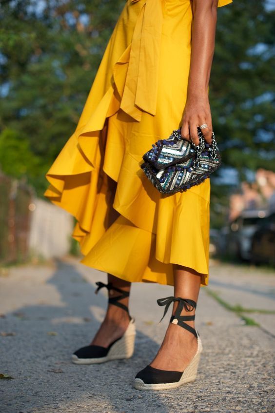 Quali sono le scarpe da portare in vacanza, semplici e super chic? Le espadrillas, le scarpe con la suola in corda che non passano mai di moda ed ogni anno sono parte integrante della valigia dei vacanzieri. Nate come calzatura tipica spagnola, inventata due secoli fa dai pescatori della costa basca e create pertanto artigianalmente, sono diventate un trend della stagione estiva. L’azienda spagnola a cui si pensa quando si parla di espadrillas è senz’altro Castañer, che ha avuto modo negli anni 70′ di far conoscere le sue creazioni e renderle famose anche grazie alla collaborazioni con personaggi di spicco del mondo della moda come Yves Saint Laurent, Manolo Blahnik, Chanel. Il primo modello pensato sono state le flat, ma poi si è passati anche a quelle con la zeppa, lacci, nastri e media altezza. Comodità di solito non è sinonimo di stile ma questo non è il caso. Con un paio di espadrillas potrete visitare e fare lunghe camminate nella città, isola, che avete scelto per le vostre vacanze e sarete sempre alla moda. Ma quali sono i look giusti per indossarle? Ecco subito 4 idee per voi: