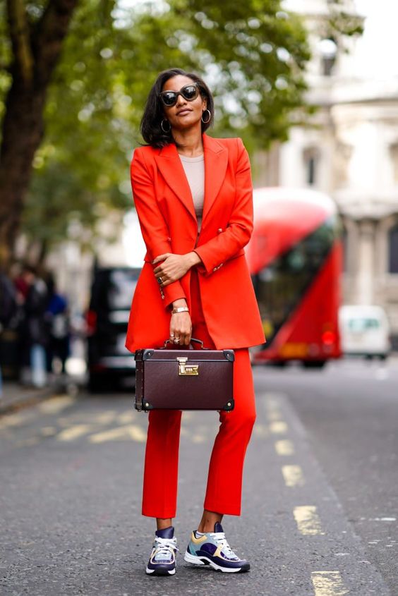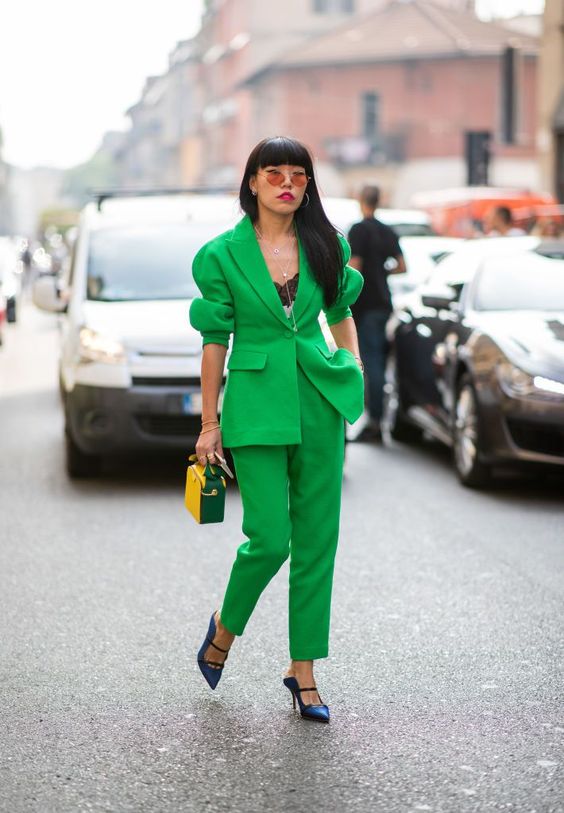 La scelta della scarpa dipende un po dalla vostra fisicità ma soprattutto dall’occasione d’uso in cui dovete indossare il tailleur. La sua versatilità lo rende adatto sia al giorno che alla sera, con cambio di accessori. Va bene in ufficio con una 24 ore e sneakers e per una cena con decolleté, slingback e clutch. Gonna o pantalone non fanno differenza nella costruzione del look, valgono le stesse regole: total look dalla nuance audace, top/blusa possibilmente neutra e bijoux poco visibili o addirittura assenti. Quindi che aspettate? Correte a comprare un tailleur dal colore vitaminico per il vostro look da lavoro e per il tempo libero. Scegliete la tonalità più adatta al vostro incarnato per far risaltare la vostra bellezza e soprattutto per rendere il vostro stile unico ed invidiabile! Vi lasciamo proponendovi delle idee outfit direttamente dallo streetstyle delle ultime fashion week!