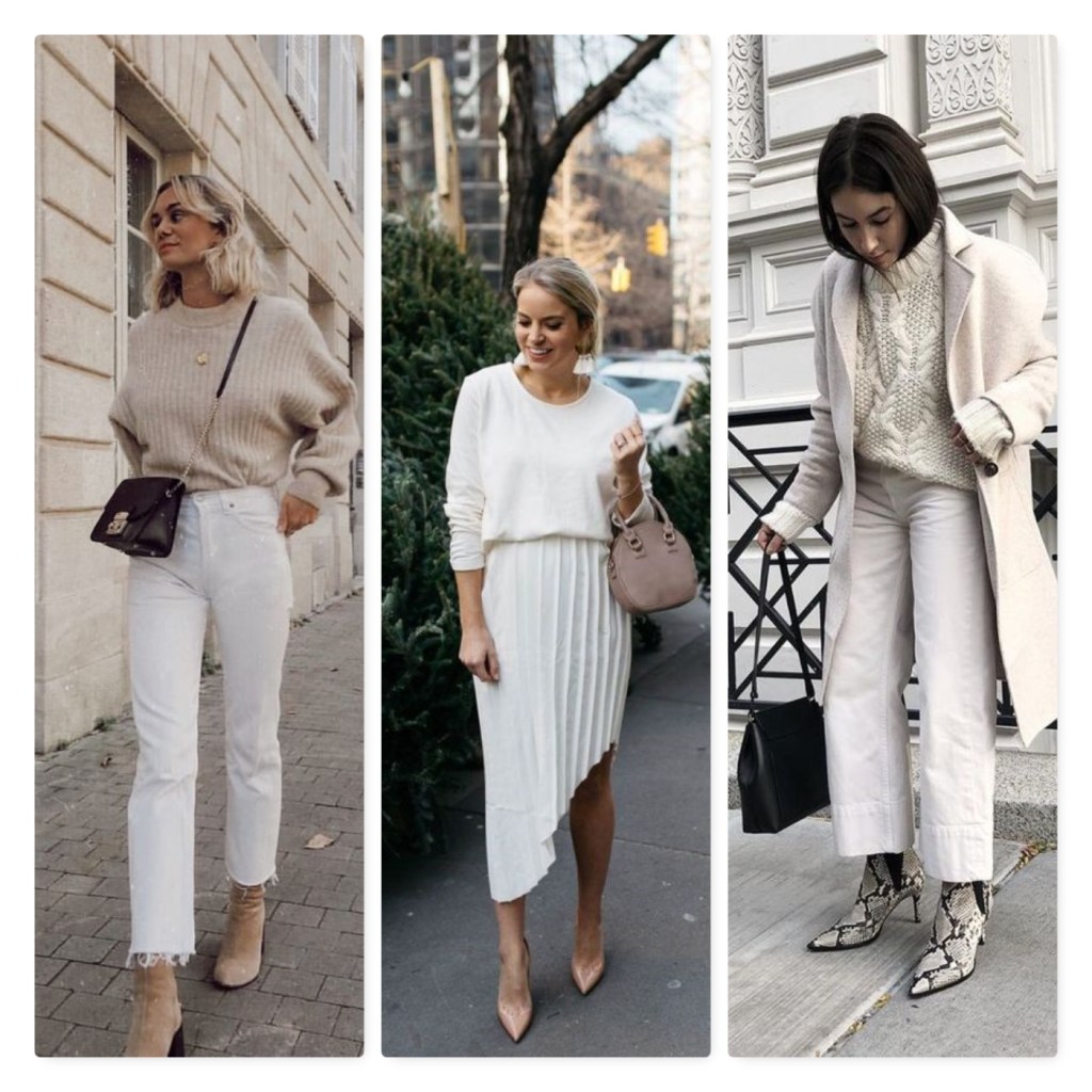 Effettivamente, da un paio di stagioni, impazza il bianco anche nei mesi più freddi. Cosa c’è, in fondo, di più chic ed elegante di essere avvolte in un caldo cappotto o in un maxi pull bianco? Le tendenze prediligono il total white in contrasto ad accessori colorati, all’animalier, ai toni della terra e, ovviamente, al NERO!