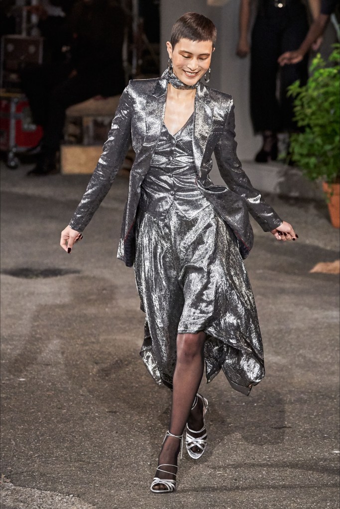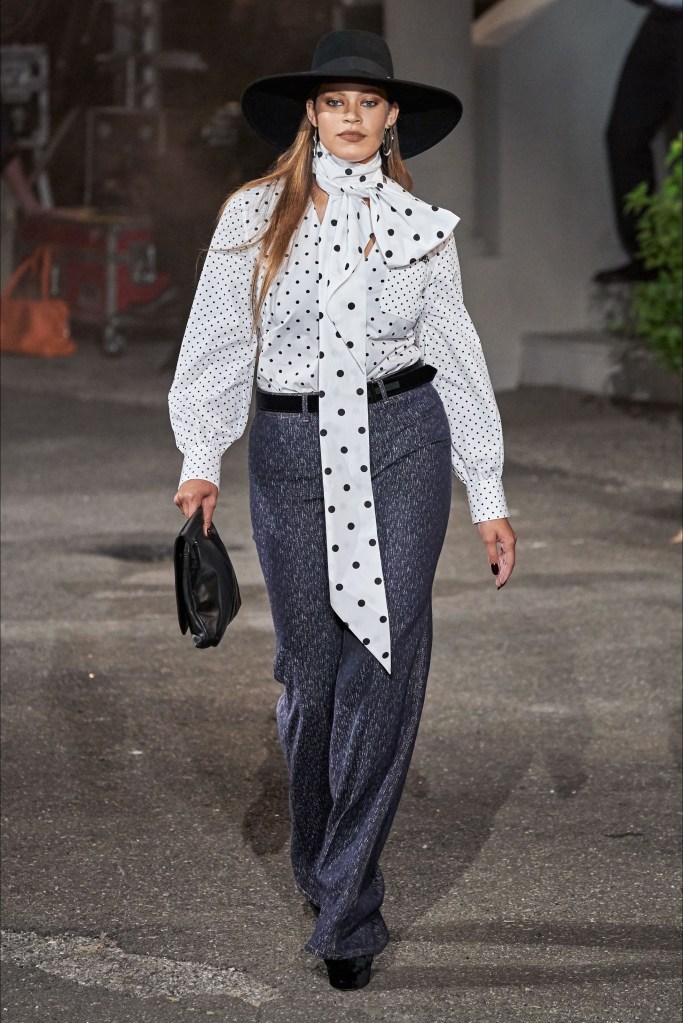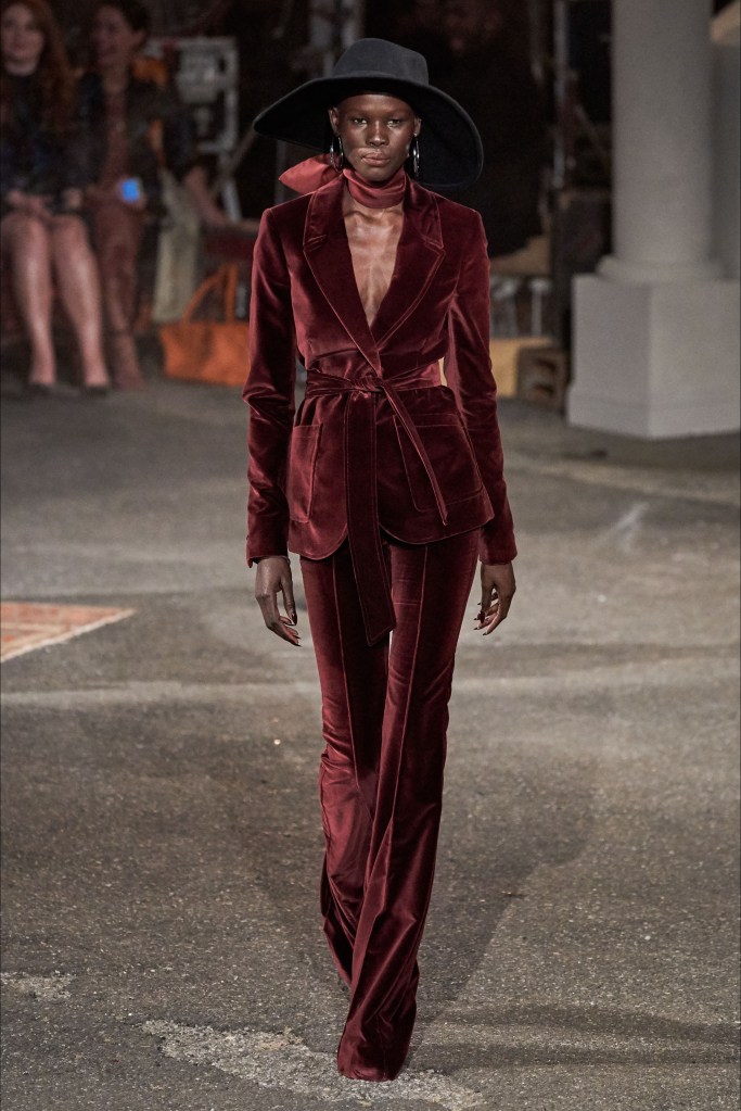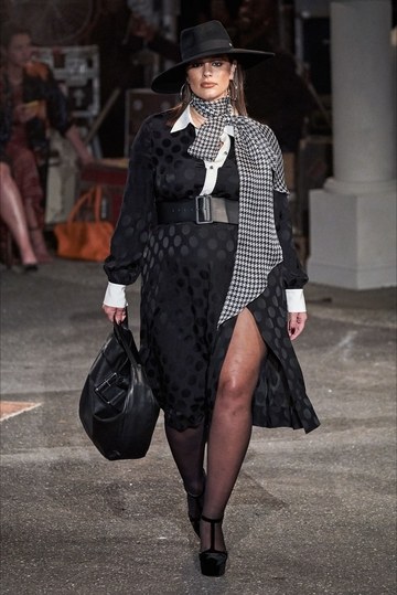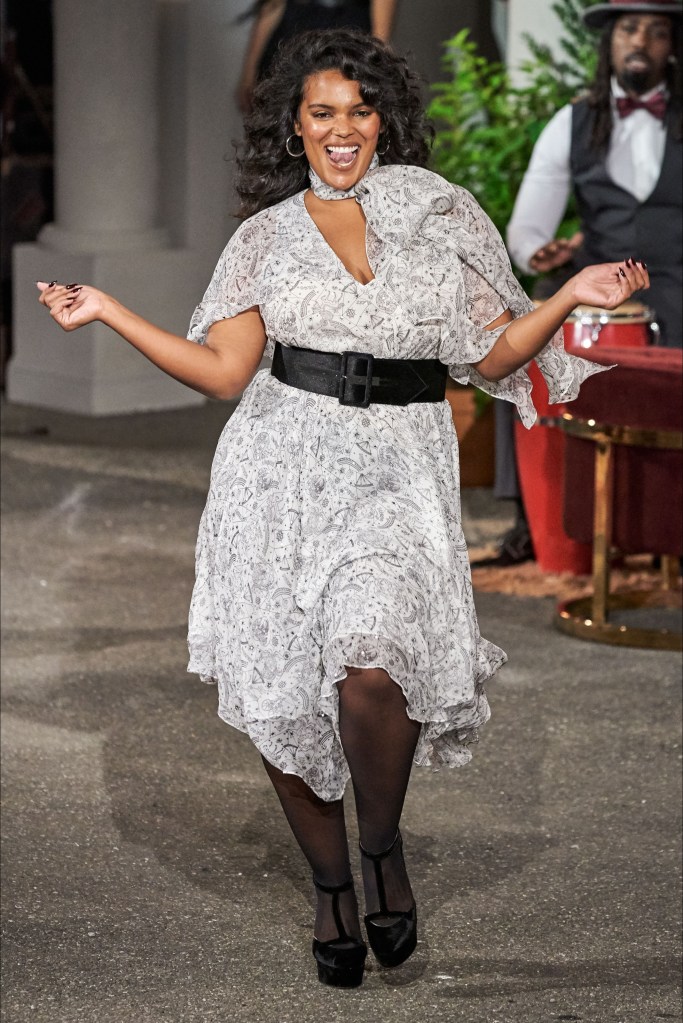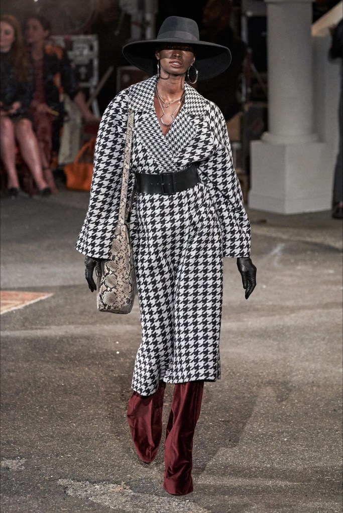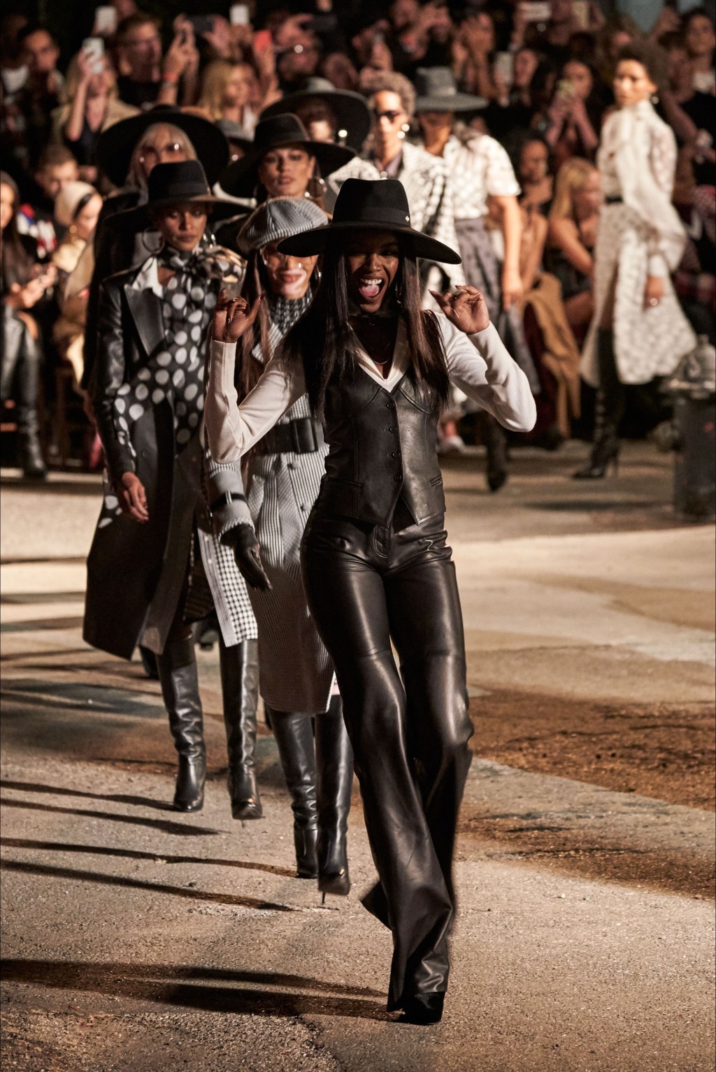 Una festa musicale più che una sfilata, con macchine vintage, musicisti, ballerini sfrenati, un tuffo nel passato negli anni ’70 e inizio anni ’80, cavalcando l’onda del power dressing dell’epoca. In passerella capi a pois, pied de poule, tailleur ed abiti a portafoglio. Tra i tessuti utilizzati il velluto, il denim, eco pellicce e pellami esotici. La palette spazia dal bianco al nero per poi arrivare al bordeaux ed a colori metallici. Inoltre le modelle scelte rispecchiano la realtà, con età, altezze, fisici ed etnie diverse. Tra le più conosciute Winnie Harlow, Yasmin Wijnaldum, Sara Sampaio, Ashley Graham, Candice Swanepoel.
