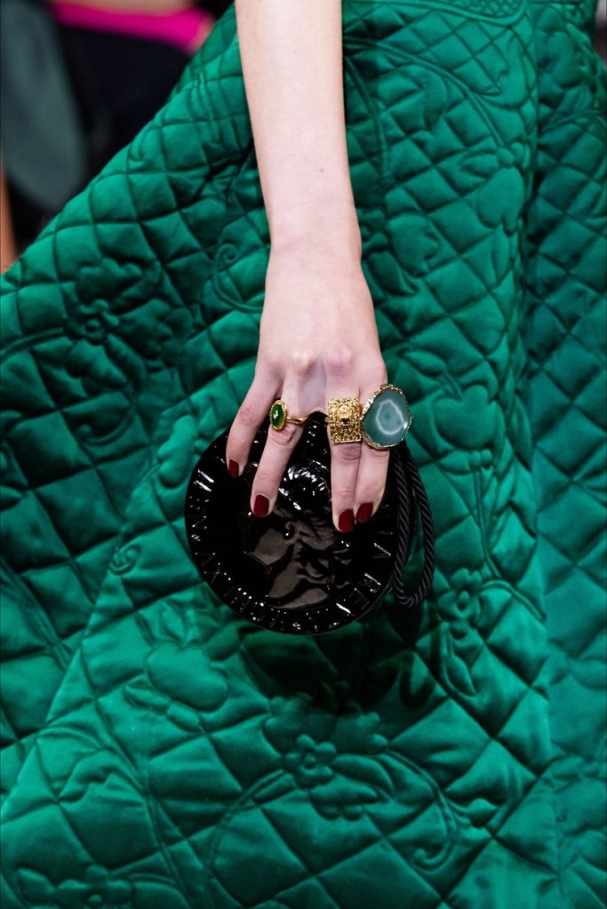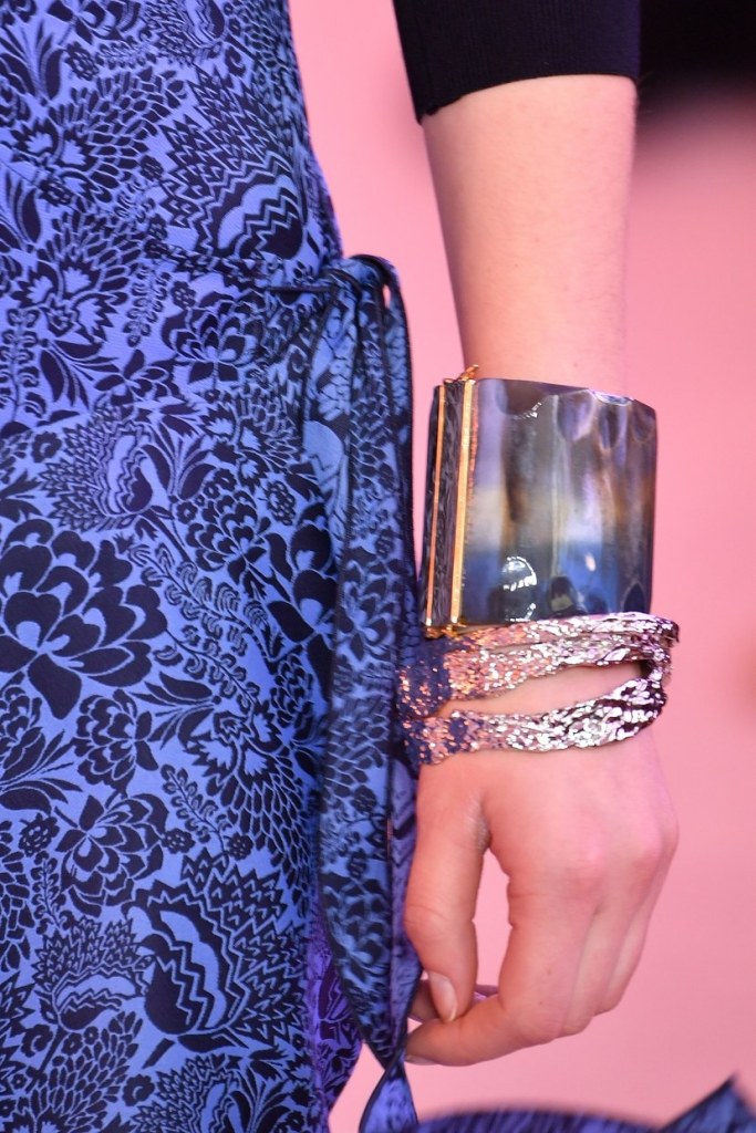 Le tendenze sono davvero evidenti, guardando i look di queste sfilate. Le collane sono decisamente MAXI e lunghe, ma continua ancora il trend dei choker. I bracciali sono rigidi e, come le collane, maxi. Gli anelli? Chi più ne, più ne metta, per un effetto glam-rock! Gli orecchini invece hanno un’unica e sola prerogativa: si portano spaiati.