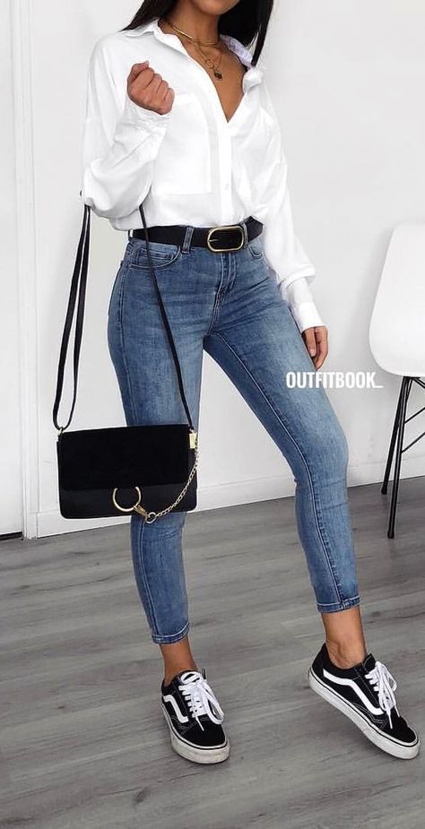 - CAMICIA BIANCA + JEANS SKINNY + SNEAKERS