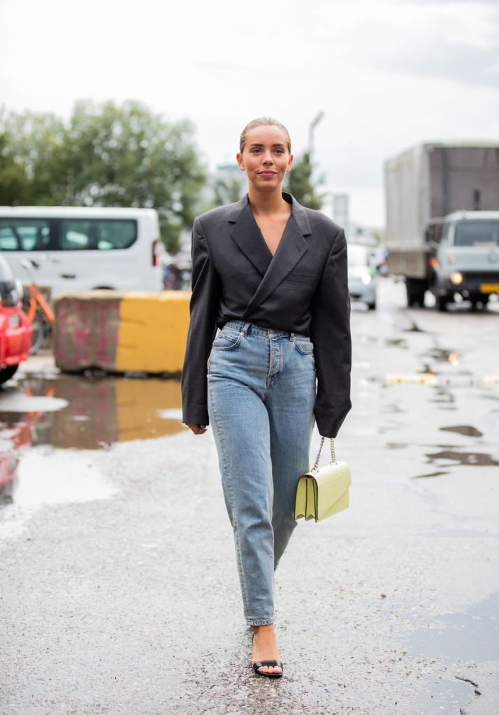 - Blazer dentro i jeans/pantaloni a vita alta, a mo di blusa
