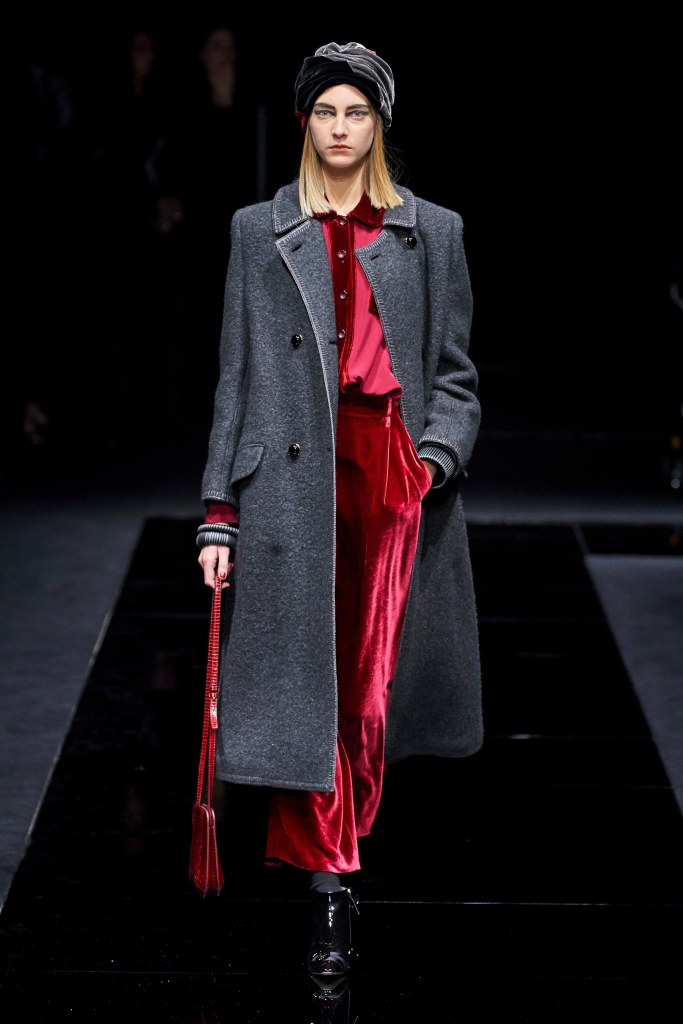 - Il tutto si è concluso con il fashion show Pre-Fall 2020/21, ispirata al concetto di Trasformismo. Una collezione con rimandi sia maschile che femminili, blazer, completi, lunghi cappotti, pantaloni fluidi, mini dress neri e nuances che vanno dal classico nero a contrasti come rosso e grigio. Re Giorgio si fa ispirare da un tema a lui caro, l’Oriente, e da reminiscenze degli anni Trenta.