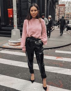 - Pantalone: partiamo dai leggins stretti alle caviglia fino al modello palazzo. In passerella il più visto è il secondo nominato, ma le fashioniste invece amano quello a sigaretta o jogger. La scelta dipende un po’ anche dalla vostra fisicità e dal saperlo abbinare bene. Per renderlo meno “volgare” non indossate mai un #totallook, ma uno spezzato. Magari con un maxi pull e sneakers, o con un blazer/ cappotto pesante in lana.