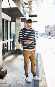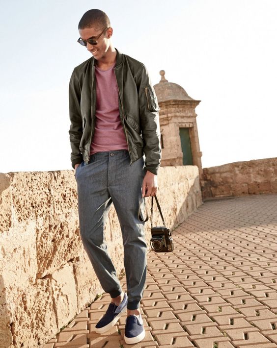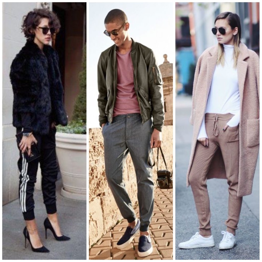 Come per la donna, anche l’uomo può mixare i due stili. Al pantalone jogger può abbinare un maglione, un bomber, una giacca in pelle o addirittura un capospalla dal taglio sartoriale.
