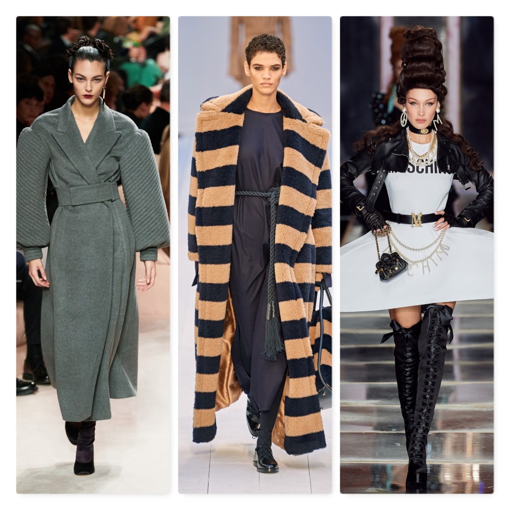 Seguendo le sfilate attuali, possiamo già notare le tendenze del prossimo autunno-inverno 2020/2021. Eccone alcune: la stampa a righe, il gessato, il doppopetto, le rouches, le lunghezze midi, le maniche a sbuffo, la pelle e l’ecopelle. Tra i colori ricorrono: i classici nero, bianco, grigio, cammello. Tra le tendenze, ovviamente, l’immancabile oversize!