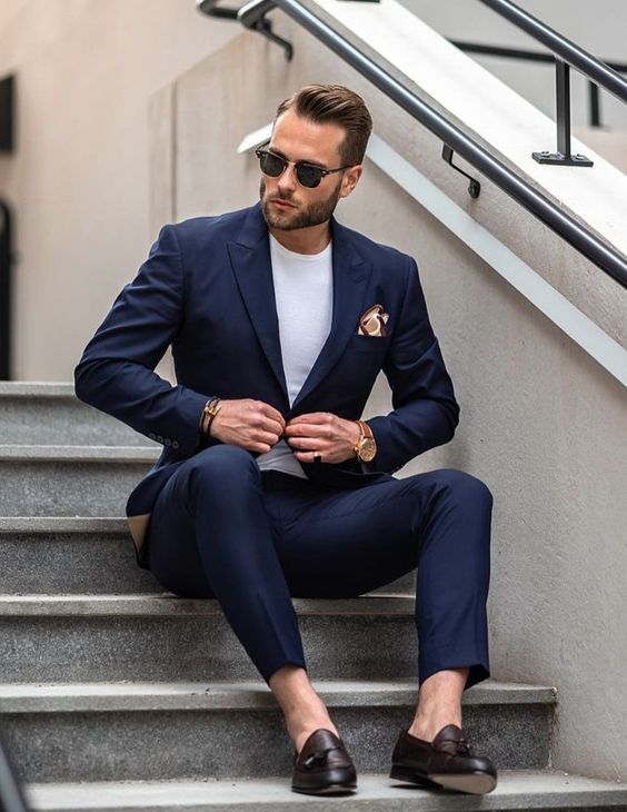 COMPLETO BLU – TSHIRT GIROCOLLO – MOCASSINO MARRONE