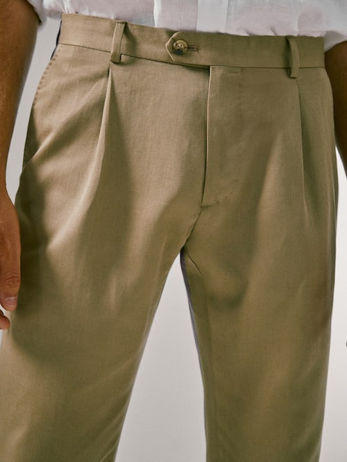 MASSIMO DUTTI – https://www.massimodutti.com/it/uomo/special-prices/pantaloni/pantaloni-slim-fit-con-pince-in-cotone-e-lino-c1882024p8871111.html?colorId=710&categoryId=1882024