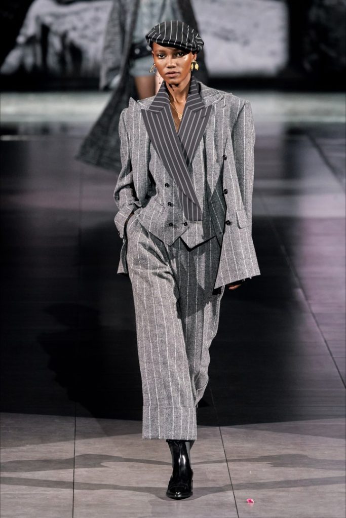 La vestibilità è over soprattutto per quanto riguarda il blazer a tre bottoni o doppio petto ed il pantalone è spesso nel modello palazzo.