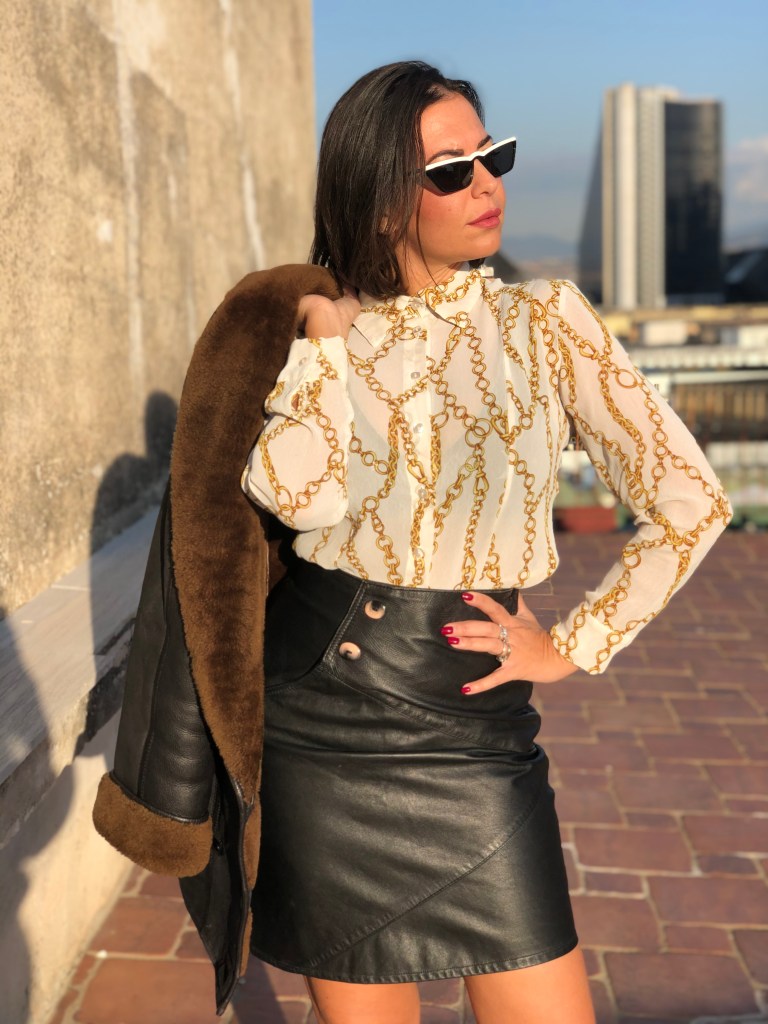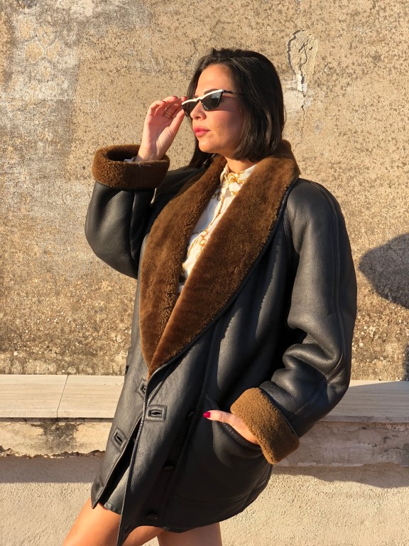 Marechiaro Closet propone quindi uno shearling originale in vera pelle. Questo capo spalla si presenta di colore nero con le rifiniture e l’interno marrone/bruciato. Questo shearling è quasi un vero e proprio capo artigianale che immedesima in pieno l’evoluzione del progetto Max Mara.