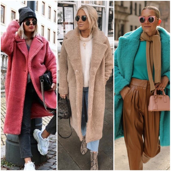 Il classicissimo è marrone chiaro, tendente al color cammello, ma lo novità di quest’anno sono le tonalità accese. Si trovano teddy coat dalle nuance più tenui come bianco, il color burro, beige alle vivaci come fucsia, azzurro, verde smeraldo fino ad arrivare al nero con fili lamè. Ogni gusto è accontentato. Rientra nei modelli che hanno un fit oversize, largo sui fianchi, spalla caduta, taglio morbido e chiusura con tre bottoni, spesso inutilizzati in quanto si tende a lasciarlo aperto. AH e la lunghezza si adegua, è sotto il ginocchio. Le fashioniste lo adorano e lo indossano in ogni occasione, è il giusto compromesso tra l’essere alla moda e il comfort, è caldissimo! Quindi è la scelta giusta se avete voglia di inserire uno nuovo capospalla nel vostro guardaroba invernale.