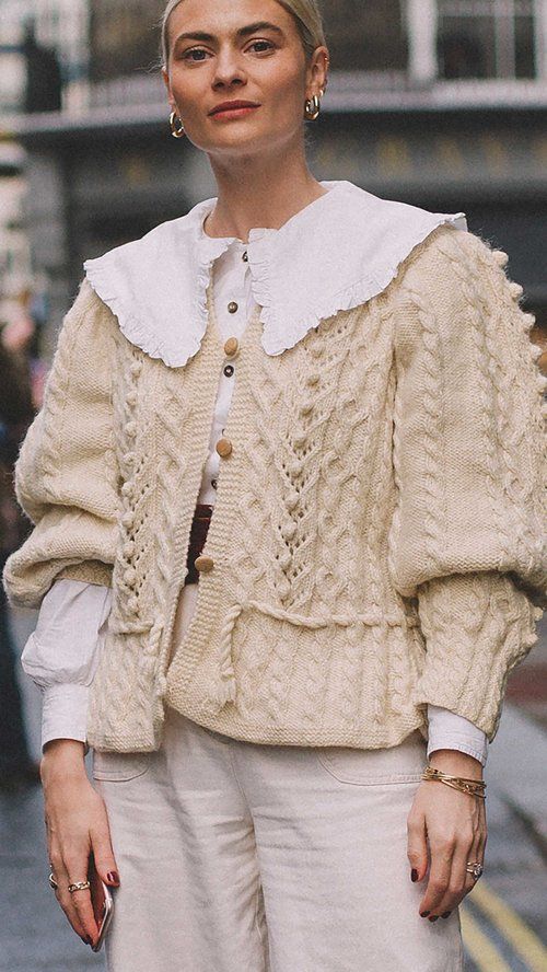 - Maxi colletto: torniamo un po’ indietro, nello specifico allo stile vittoriano ed eccovi trovata l’ispirazione vista nelle collezioni 2021 del colletto da educanda. Le tendenze lo vogliono rigorosamente bianco e rifinito da passamaneria, pizzi e ricami. Ed anche in questo caso è super visibile e spicca sugli altri indumenti indossati. La camicia con maxi colletto si porta con un maglione a girocollo o con un cardigan con apertura sul davanti, che lo lascia uscir fuori nella maniera più completa. Per le giornate con temperature midi, sta bene anche da sola ed ha il suo perchè!