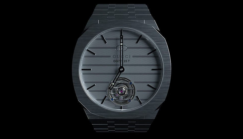 Anche il nuovo calibro, GG727.25 (il primo movimento sviluppato e realizzato dalla manifattura Kering situata a La Chaux-de-Fonds), ha numeri simbolici: il ‘7’ evoca un senso di completezza, il ‘2’ rappresenta equilibrio e cooperazione, e il ‘5’ simboleggia curiosità e libertà. E’ proposto sia in modelli in acciaio e incastonati a pavé che in due versioni tourbillon, in platino e oro giallo. Ci sono poi i 5 modelli G-Timeless: Dancing Bees, con le api posizionate sul quadrante; Automatic, caratterizzato dal motivo dell’ape, quadrante in pietra e cinturini in pelle pregiata; la linea con fasi lunari e Pavé, modello automatico con diamanti incastonati e cinturino in coccodrillo. Del modello Grip sono realizzate cinque versioni in materiali preziosi e dotati del movimento “Jump Hour”.