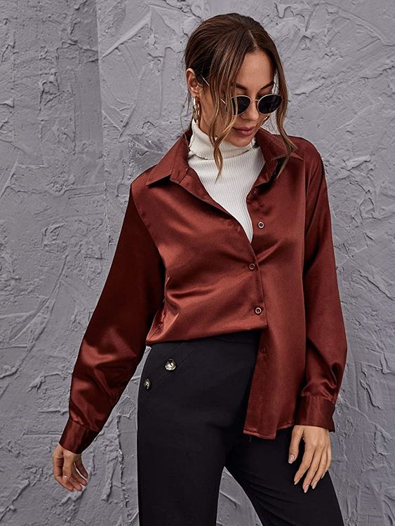 - Camicia in satin, eleganza allo stato puro. Semplice ed adattabile ad outfit sia da giorno che per eventi serali, sarà u regalo super gradito!