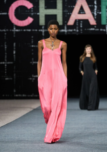 Il tweed tessuto iconico della maison, è stato il protagonista della sfilata Autunno Inverno 2022-23, non solo nei capi ma anche della location, il salone del Grand Palais Ephemere, rivestito interamente proprio in tweed.