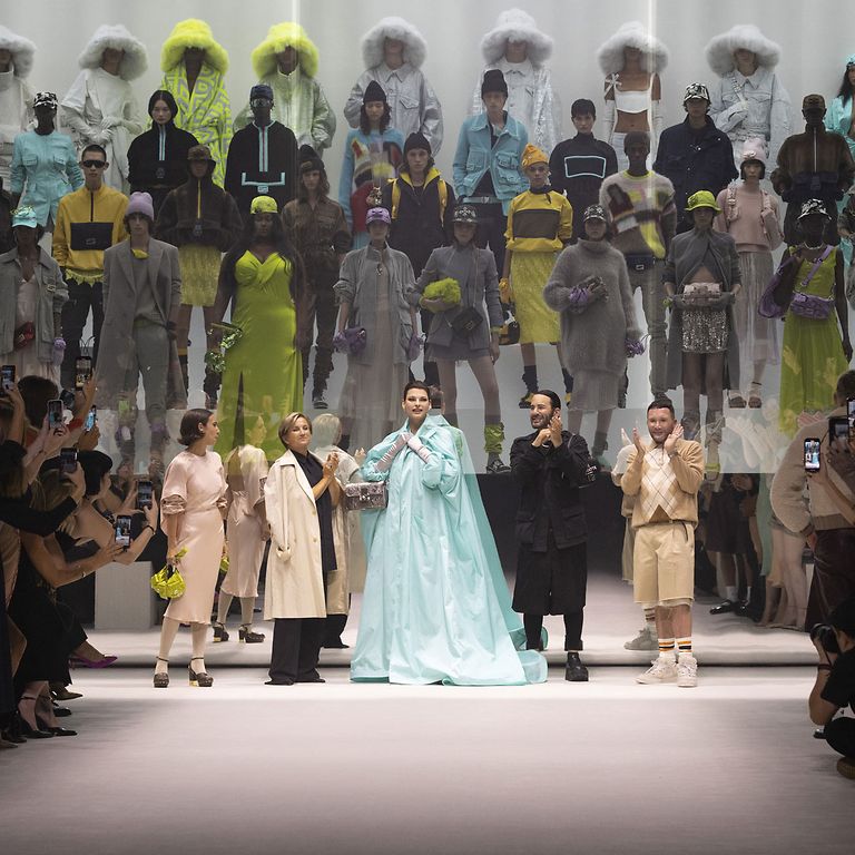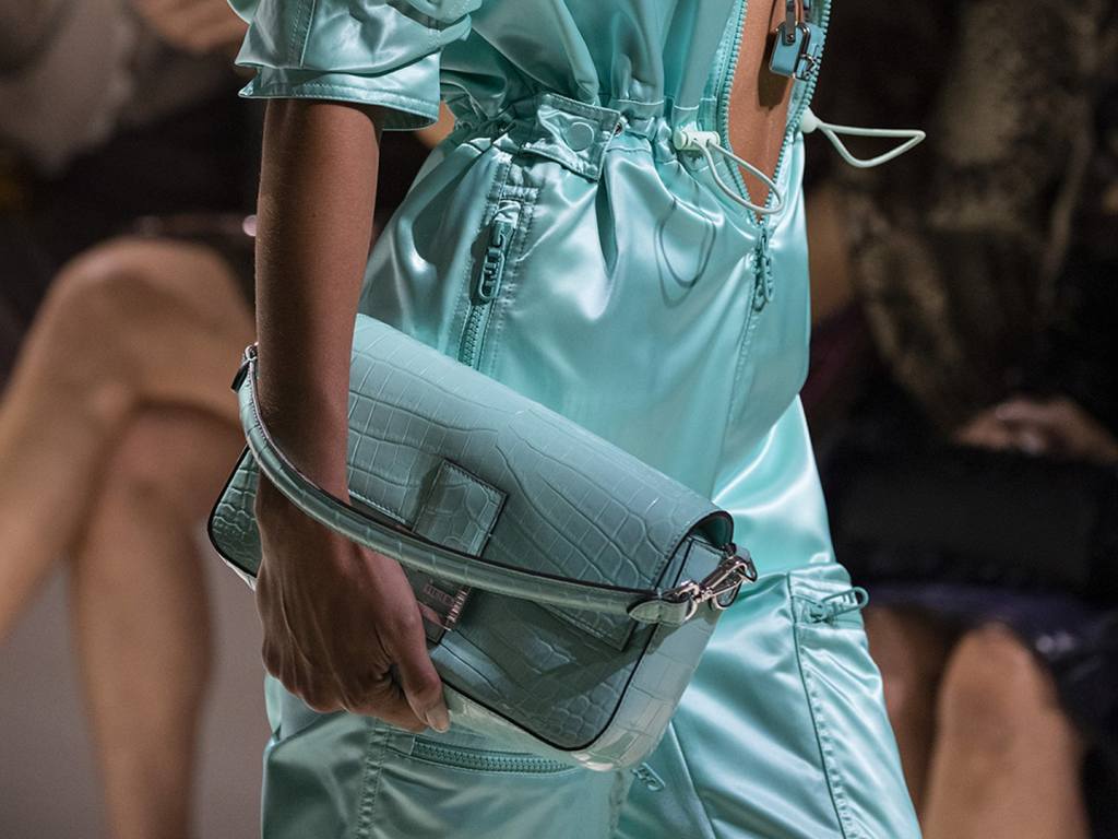 irriverente della Baguette, declinandola in mille varianti diverse e trasformandola anche in accessori ed elemento décor. In passerella è riapparsa, in occasione di questa celebrazione, la supermodel Linda Evangelista, rimasta lontana dai riflettori per anni, a causa degli effetti collaterali di un disastroso intervento di criolipolisi. Avvolta da uno splendente mantello azzurro Tiffany, Linda torna ad incantare.