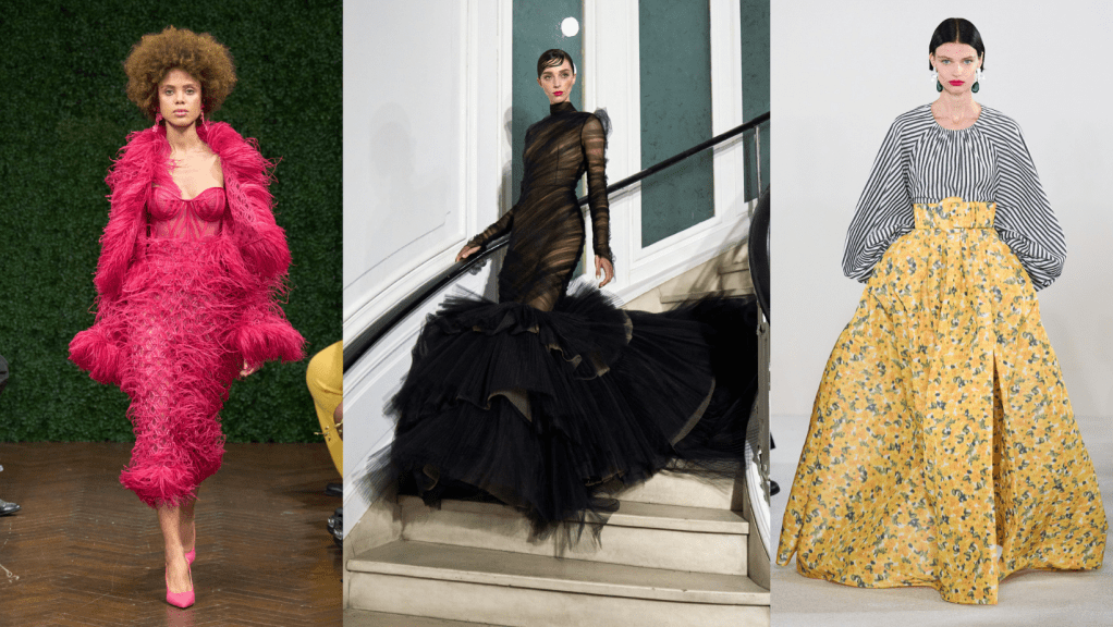 Christian Siriano firma degli abiti da sera con drappeggi e gonne di ruches super voluminose, che trasportano la mente in atmosfere incantate. Il colore nero è comune, a rimarcare quel tocco grunge anni ’90.
