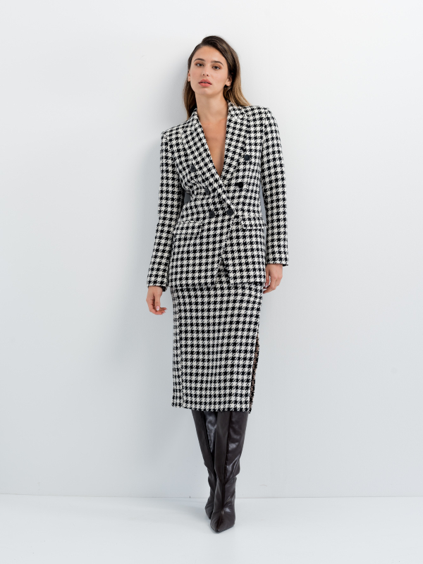 Lo shop di EC Boutique propone gonna midi e giacca in pied de poule.