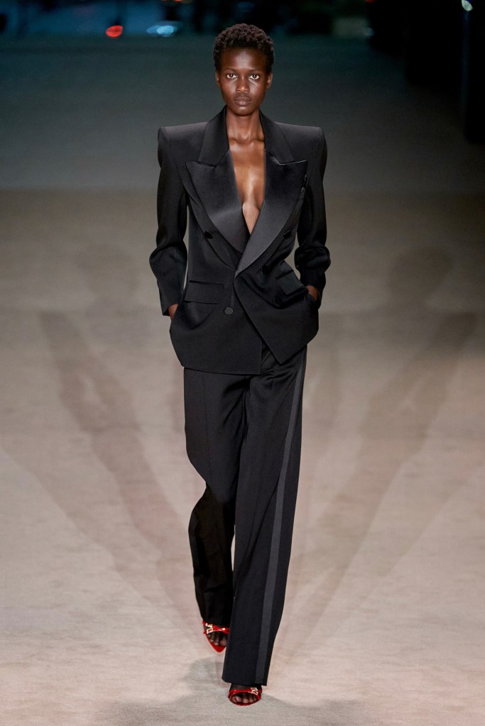 Molti brand, soprattutto italiani, durante le sfilate hanno puntato al tailoring, con completi sartoriali giacche e pantaloni, o con gonne mini o midi, rigorosi e austeri.