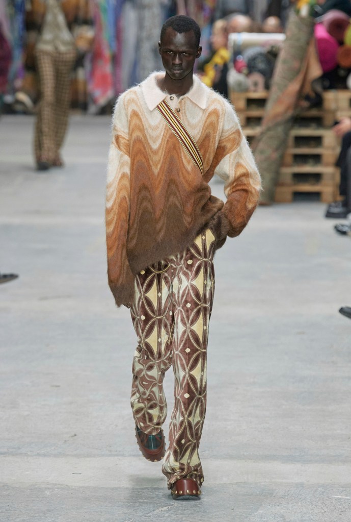 Marco De Vincenzo debutta con la sua prima collezione uomo da Etro, presentando un mix calibrato di storia e creatività. Protagonisti indiscussi sono i tessuti, che animano la location e la collezione stessa. La maglieria, le camicie a righe e le tute in seta rimandano all’idea di casa, di calore, all’heritage inestimabile della maison.