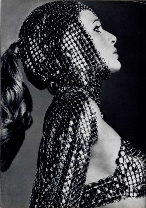 Il suo stile visionario riusciva a leggere perfettamente il contesto dell’epoca, tanto che nel 1969, anno del primo sbarco sulla Luna, presentò una collezione che rispecchiava l’estetica tecnologica e futuristica del quel periodo. La prima borsa “69” di Paco Rabanne fu realizzata con una serie di dischi d’acciaio e anelli di metallo dal design innovativo mai visto prima.