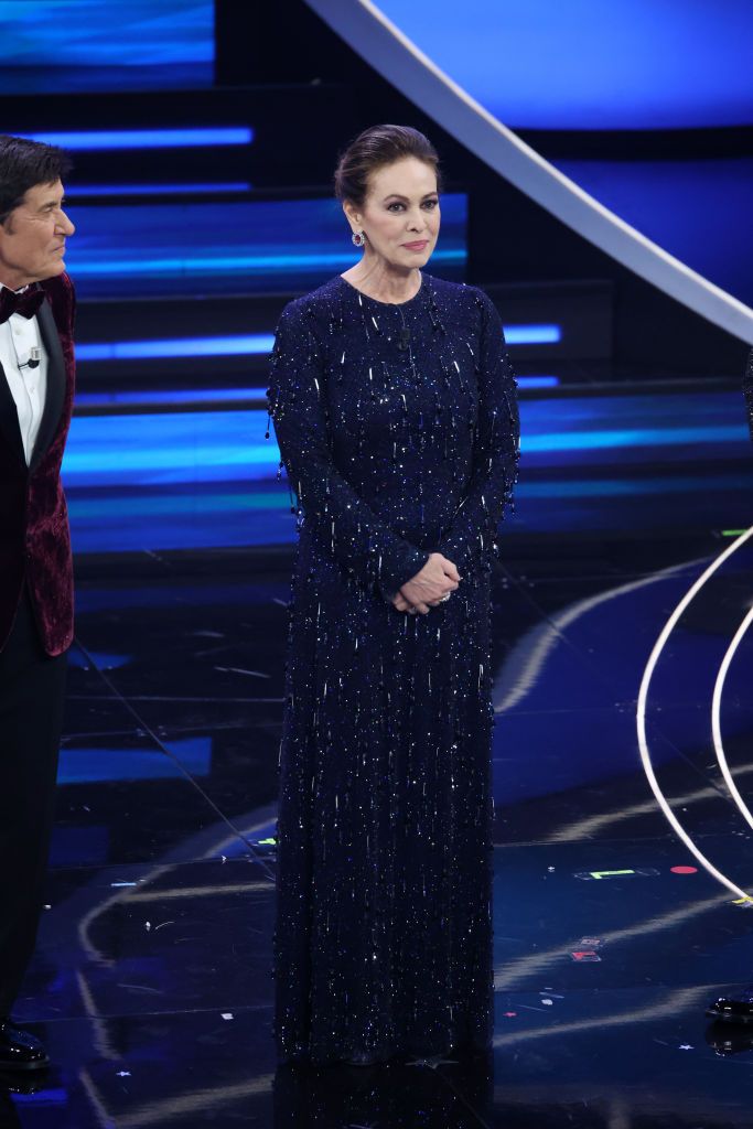 L’ospite dall’eleganza indiscutibile è stata sicuramente Elena Sofia Ricci, nel suo abito blu Giorgio Armani.