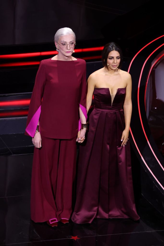 Emozionante il monologo di Pegah Moshir Pouh, attivista italiana di origine iraniana che è salita sul palco dell’Ariston per ricordare che cosa sta succedendo nel suo Paese, poi raggiunta da Drusilla Foer. Eleganti entrambe.