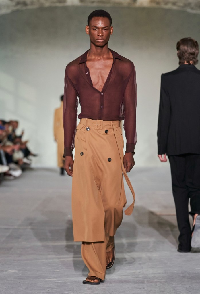 Sinonimo di chic parigino, Ami ha continuato la sua incursione nella semplicità incentrata sul minimalismo degli anni ’90: le spalle sono pronunciate e le linee fluide. L’abbigliamento maschile continua ad evolversi in una sartoria raffinata, mentre blazer dal taglio impeccabile vengono indossati insieme a pantaloncini di pelle succinti, abbinati a cravatte per chi aspira ad una perfetta disinvoltura.