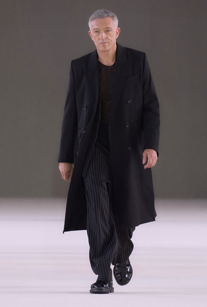 Ad aprire lo show Ami, l’attore francese Vincent Cassel, che ha sfoggiato un cappotto doppiopetto nero, top semitrasparente e morbidi pantaloni gessati.