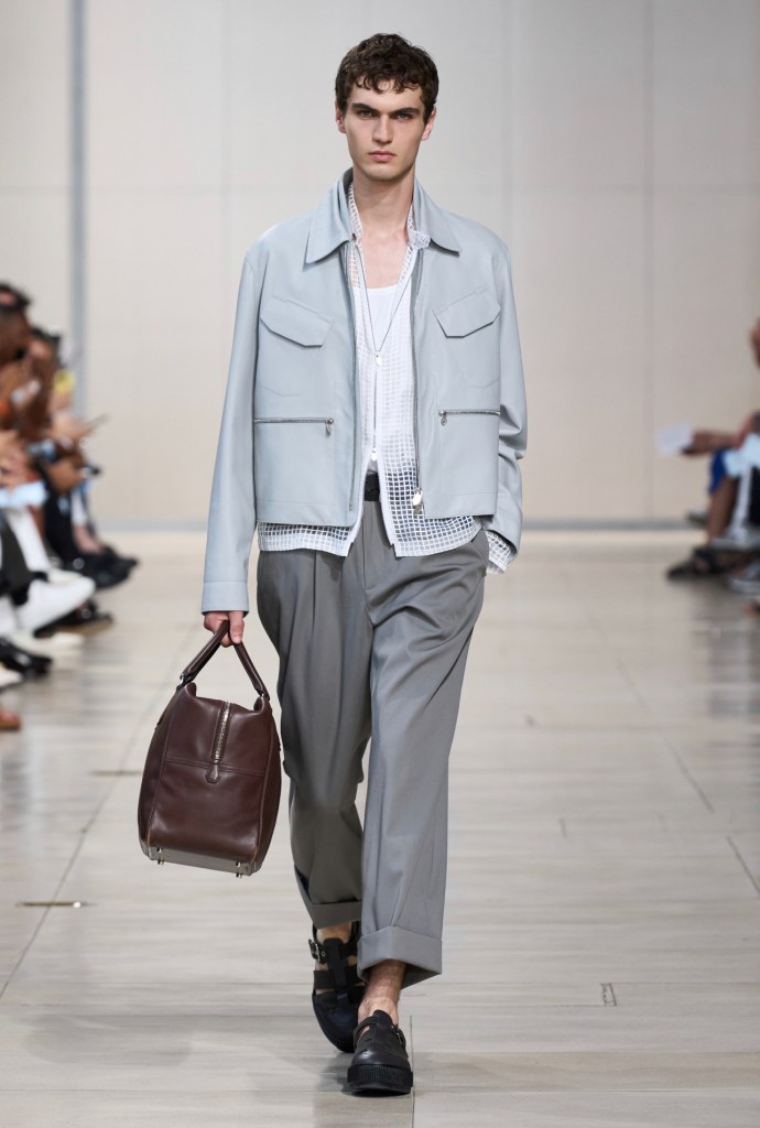 Il direttore creativo Véronique Nichanian ha presentato una collezione estiva con elementi iconici di Hermès, che incorpora tessuti tecnici, cashmere, sete, cotone semitrasparente e una serie di borse per riporre i tuoi oggetti essenziali. La collezione comprendeva anche pezzi classici come camicie leggere, giacche trasparenti, blazer doppiopetto, capispalla con zip, pantaloni in nylon e pantaloni oversize.