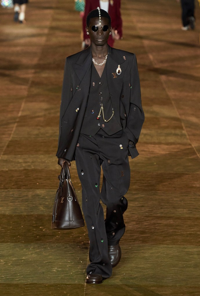 Definito Damouflage, fonde il pattern della maison con i quadrotti goffi dei pixel, dando vita ad una nuova stampa, legata indissolubilmente alla figura di Pharrell. Soprabiti, abiti sartoriali oversize, bomber metallizzati, camicie grafiche e set coordinati raccontano l’uomo formale ed essenziale Louis Vuitton: la collezione fonde l’alta sartoria con tocchi di contaminazione streetwear e militaresca.