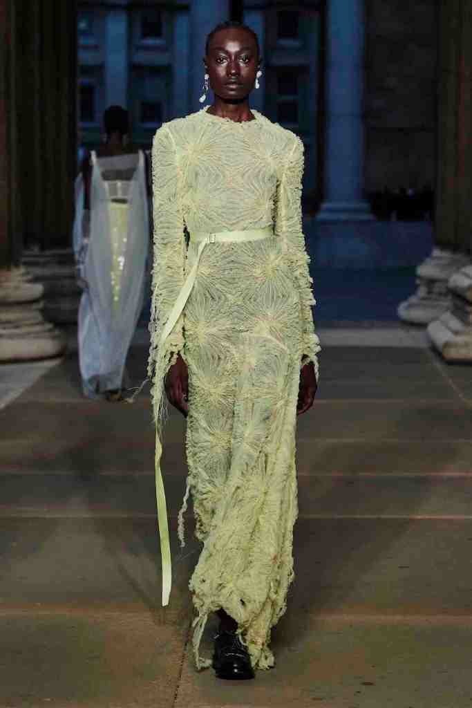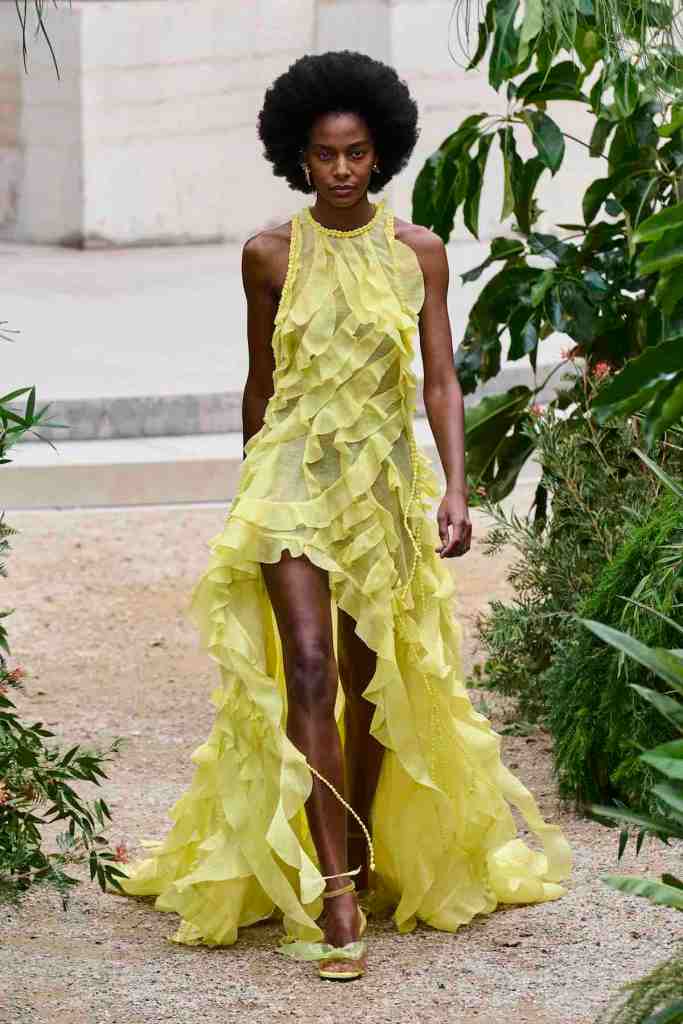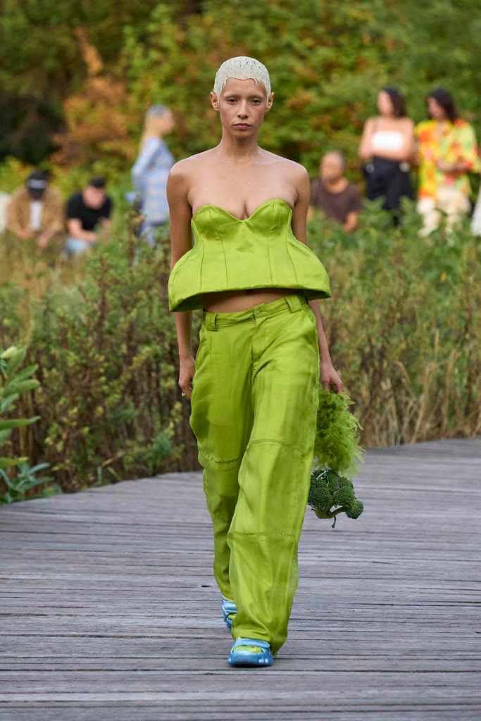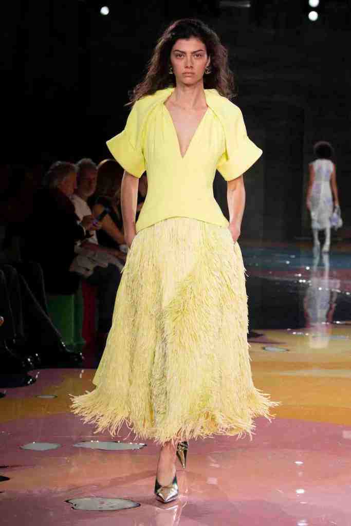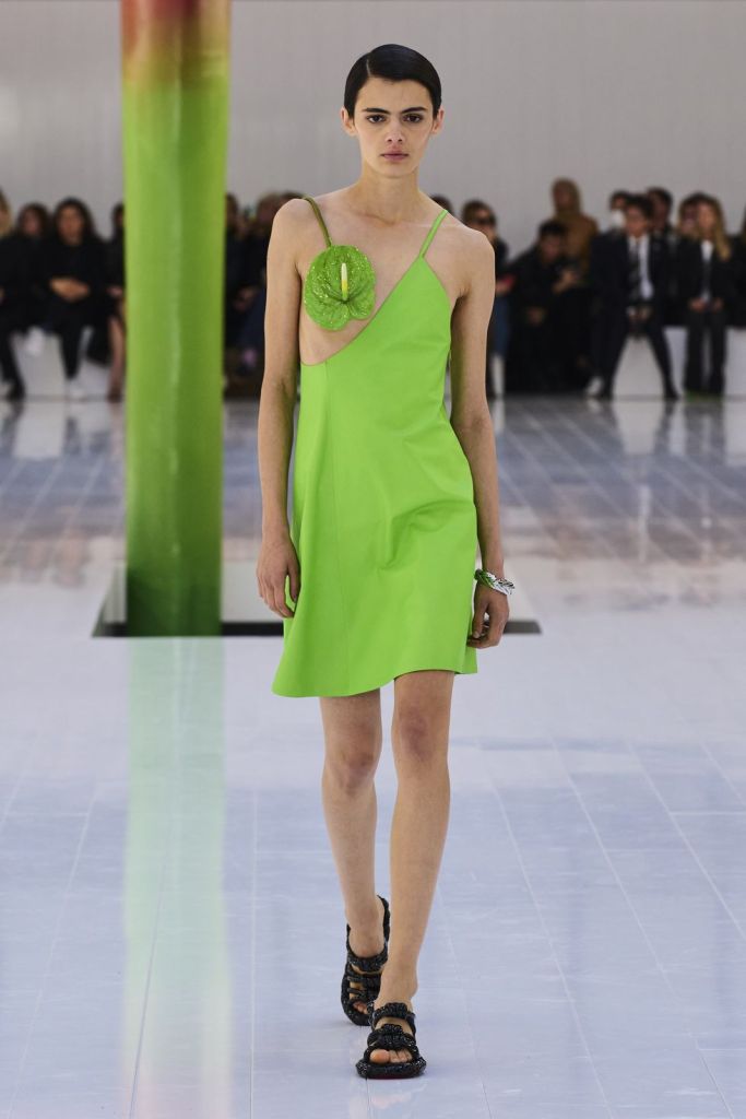 Sebbene il verde lime non sia una novità assoluta del 2023, continua ad essere protagonista di molte collezioni, investendo capi e accessori in maniera suprema. Una piccola variante è il verde avocado, che si distingue di pochi toni dal primo. Questo verde acidulo abbandona la cucina e diventa, all’occorrenza, elegantissimo, come da Michael Kors, che gioca con frange e tessuti fluidi per dei cocktail dress da gran soirée o da Proenza Schouler, che tinge il minidress dalle maniche con maxi ruches o da Loewe che colora l’abito giglio.