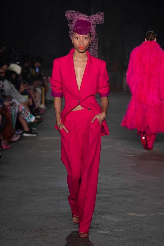 Arancione, rosa barbie, ma anche rosso, blu Klein, verde acido e lilla, o tinte metalliche e sparkling abbandonano il mix and match del color blocking, per esplodere in outfit monocromatici head-to-toe dal forte impatto visivo.