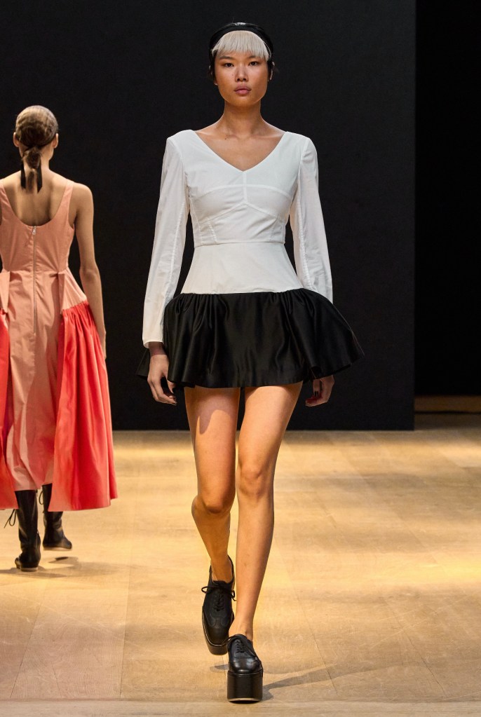 The Dress Rehearsal è la collezione SS24 presentata da Simone Rocha, con una sfilata co-ed che si è tenuta nel contesto suggestivo della English Balletterei Company, la prestigiosa scuola di danza londinese. Un’atmosfera romantica ha pervaso la sala nel secondo giorno della London Fashion Week, con tessuti sartoriali, fiori, drappeggi, ricami e carta e nylon ghiacciato, che si alternano all’eleganza lucente del satin duchesse.
