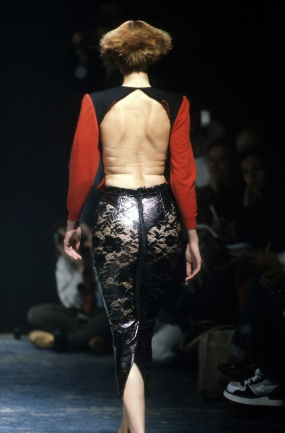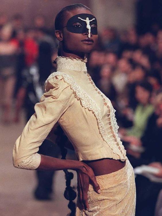 Dante del 1996, irriverente inno grunge in versione Couture, presentava pantaloni e jeans unici, corsetti ispirati al XVIII secolo e maschere per gli occhi con Gesù applicato in un’ambientazione drammatica della chiesa londinese e uno scheletro seduto tra il pubblico.