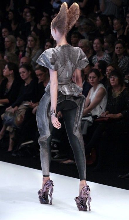 Plato’s Atlantis del 2010 è stato l’ultimo show di McQueen, visione di un mondo sottomarino come conseguenza del cambiamento climatico, ambiente di un laboratorio di ricerca: le modelle si trasformano in esseri ibridi alieni, il trucco diventa protesico e ai piedi indossano le sorprendenti calzature armadillo.