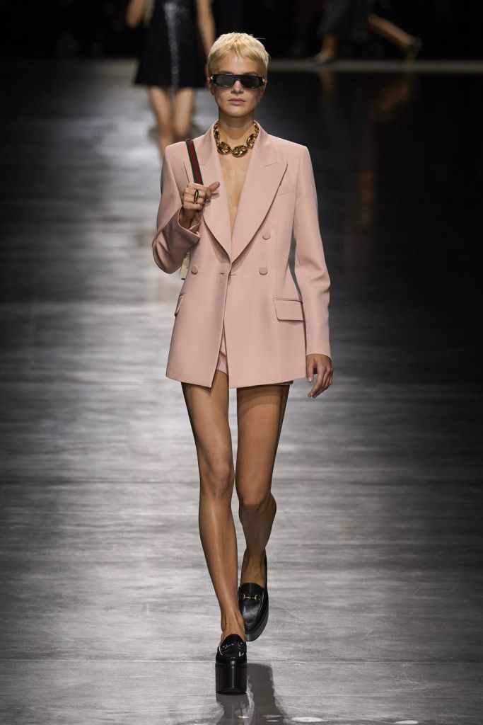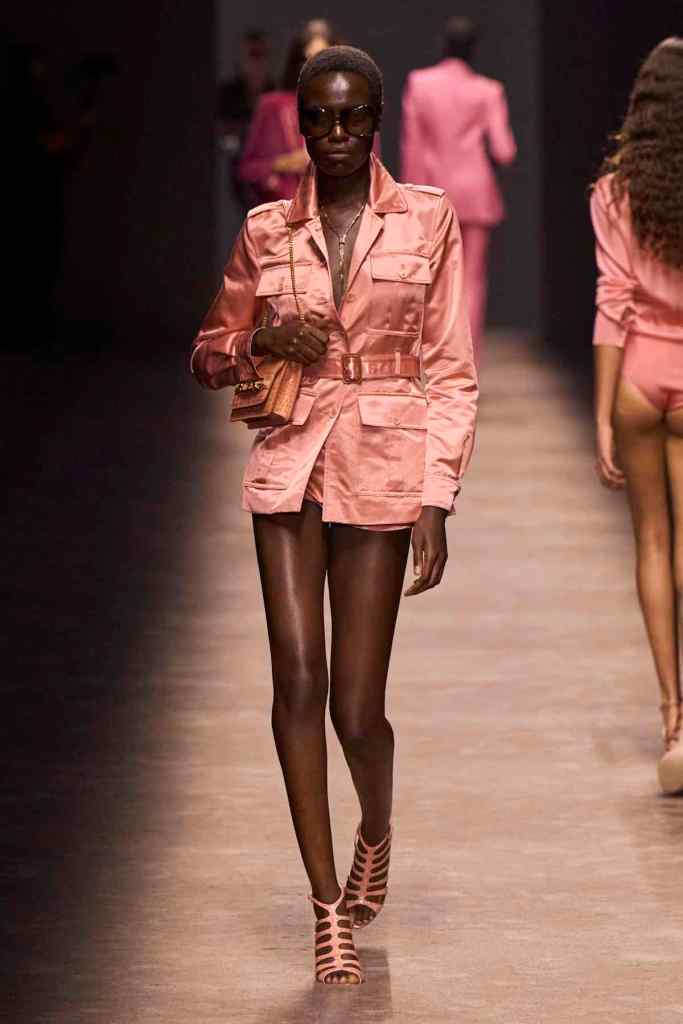 Zimmerman e Balmain consacrano questa shade con un romantico tripudio di volant e applicazioni floreali, così come Luisa Beccaria che accosta ai suoi delicati minidress il color pesca. N°21 crea slip dress seducenti e pudichi, mentre Tom Ford e Gucci realizzano delle suit eleganti e sbarazzine allo stesso tempo. Maison Alaia declina questo colore con il bianco optical, mentre Stella McCartney con il giallo chiaro.