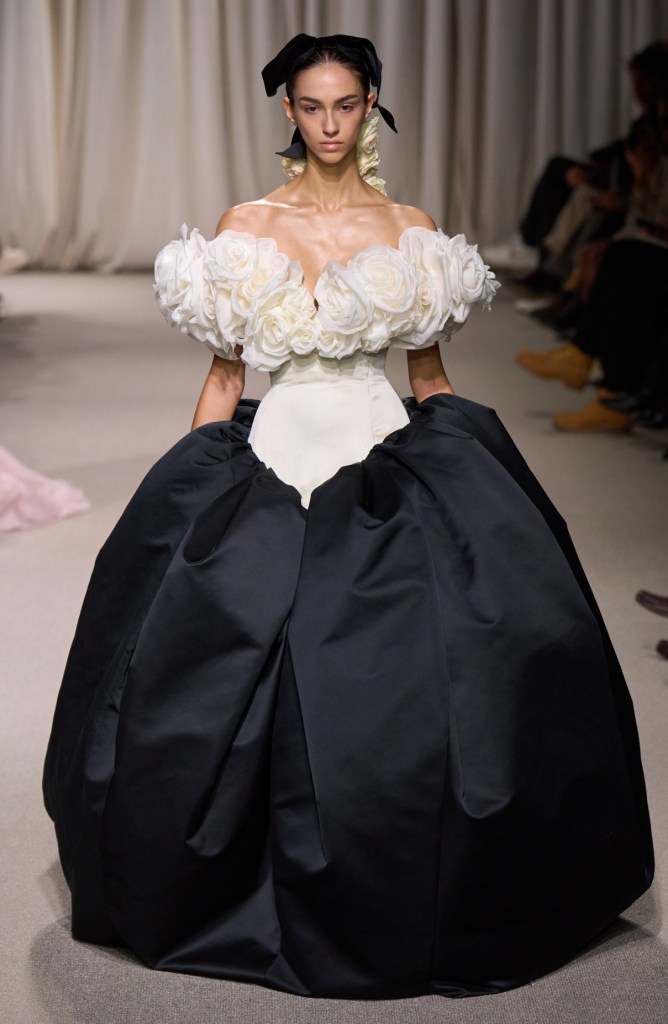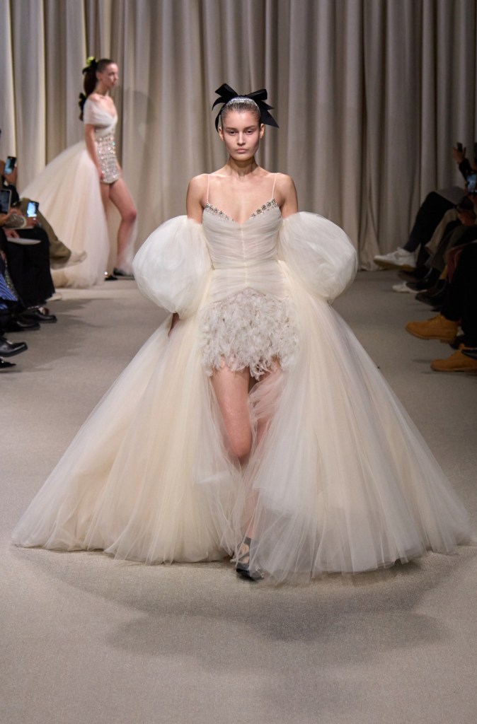 La prima giornata dell’Haute couture SS24 si è conclusa con lo show di Giambattista Valli, una collezione che ha celebrato il romanticismo più puro, tra tulle, strascichi voluminosi e galattici, abiti cortissimi in contrasto con mantelle con piume, velluti, fiocchi e fiori 3d.