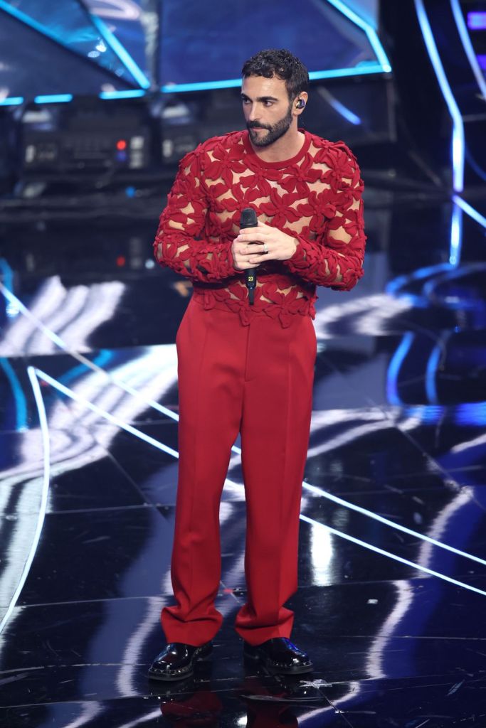 Tra alta moda e emozioni, Marco ha svolto il suo ruolo degnamente, affrontando il palco più temerario della musica italiana e sfoggiando un glam da fare invidia. Il cantante ha scelto quattro maison diverse per dare voce alla sua personalità: tra trasparenze, gonne, fiori e pelle, da Valentino a Versace, da Emporio Armani a Fendi.